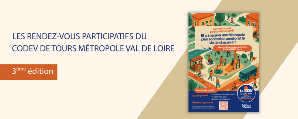 Le 10 décembre 2025, le Conseil de développement de Tours Métropole Val de Loire a organisé son troisième Rendez-vous participatif intitulé « Et si imaginer une métropole plus accessible améliorait la vie de chacun·e ? ». Ouvert à toutes et tous, cet événement a permis de croiser apports d’experts, ateliers collaboratifs et observations de terrain afin d’alimenter l’avis que le Codev prépare en autosaisine sur l’accessibilité du territoire métropolitain.